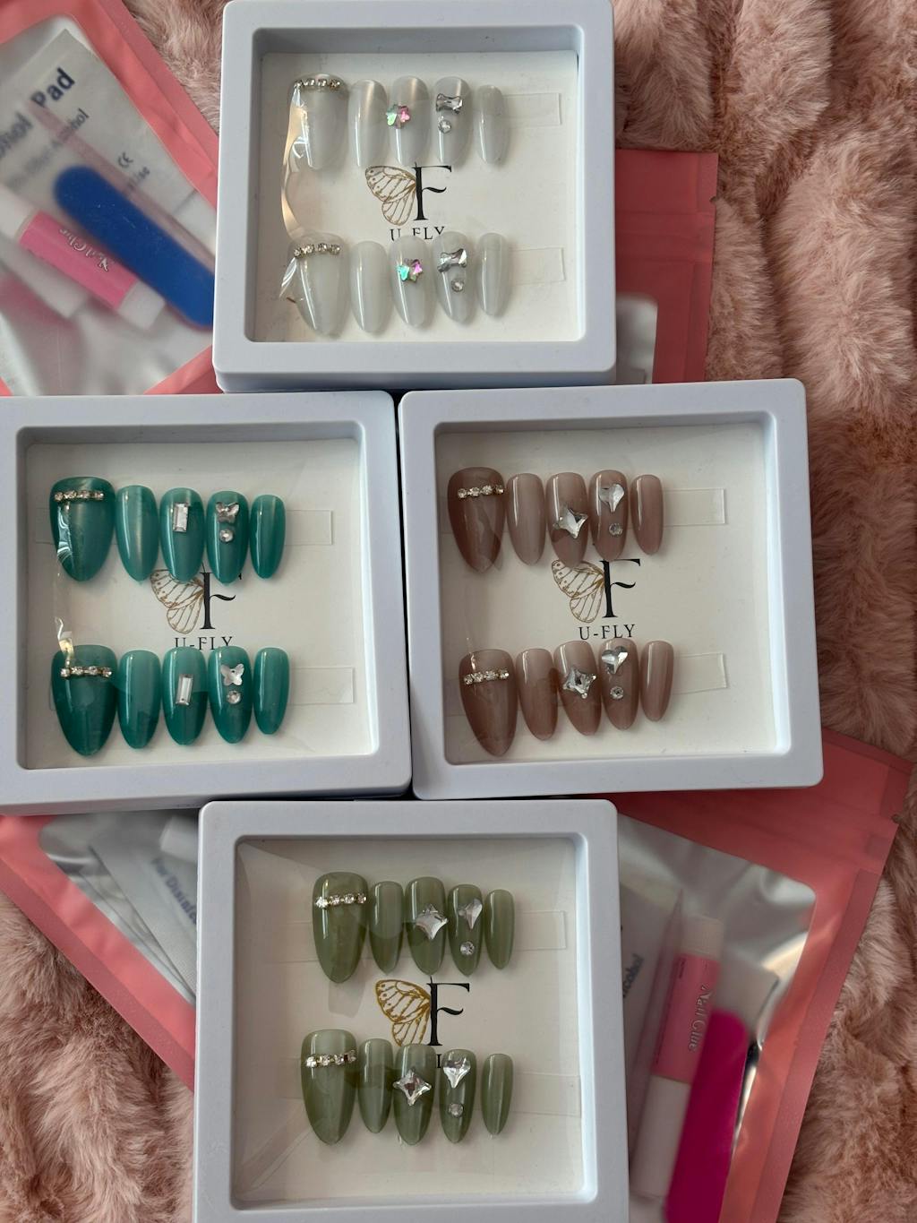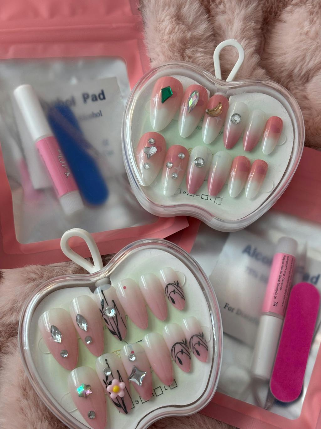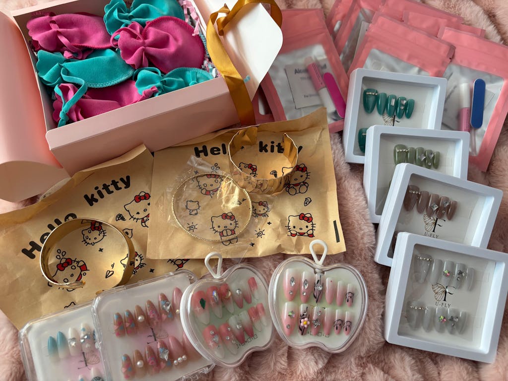 ChristyH I couldn’t be happier with my jewelry blind bags and nail purchase! I received some very pretty pieces and beautiful nails. They came in the little pink and blue pouches (some in white sheer bags) very well packaged and cute! The nails came with a mini file, prep wipe and glue. Very good value as well as being a sweet surprise and lots of fun! Plus some freebies! Highly recommend!