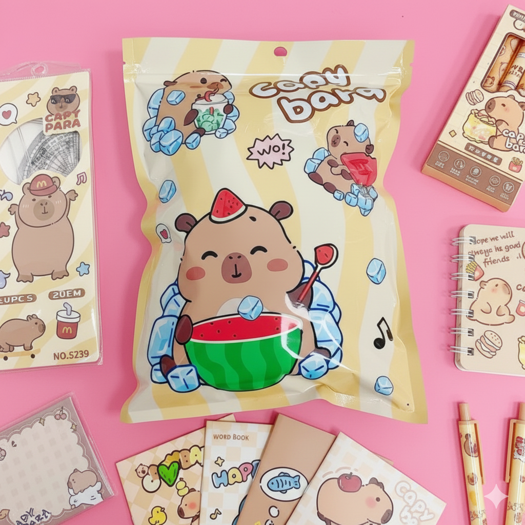 Hop into the mystery with our Capybara Stationery Blind Bags, 4-5 items in a bag! Total stationary item quantity 24-28 Pcs in 6 blind bags