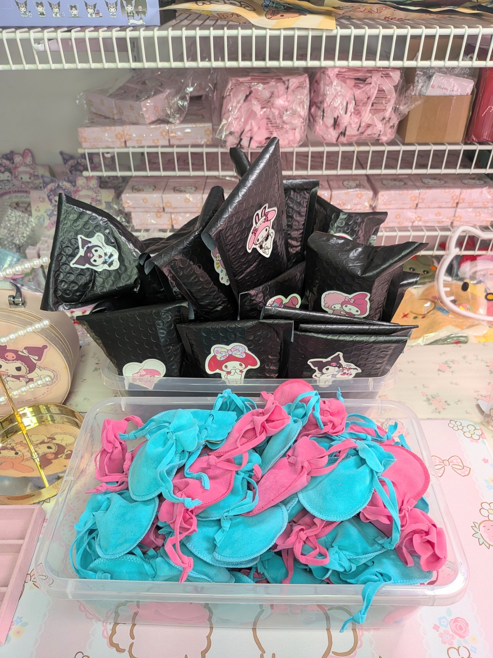 Each order includes mystery jewelry pouches in pink & blue, plus special surprise envelopes with bigger goodies inside 💌